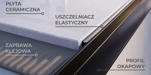 Profile okapowe powinny mieć budowę umożliwiającą odprowadzenie wilgoci z warstw podposadzkowych. W strefie okapowej w warstwach podposadzkowych tworzonych przez zaprawę klejową, zaprawę uszczelniającą i zaprawę cementową, panuje bowiem znacząco wyższa wilgotność niż w pozostałej części balkonu. Zamknięta w tej warstwie wilgoć wykazuje szczególnie niszczące oddziaływanie na posadzkę w okresach zmiennych temperatur, kiedy w nocy temperatura spada poniżej zera, a w ciągu dnia przekracza 20 stopni. Taki proces powoduje degradację zaprawy i prowadzi do odspajania płytek. Dlatego profile okapowe powinny umożliwiać kontrolowane odprowadzenie wilgoci na zewnątrz, zapobiegając jej kumulacji, której efektem jest sprężanie i rozsadzanie warstw posadzkowych.