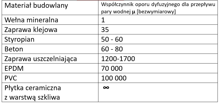 Im niższy współczynnik µ, tym lepszą paroprzepuszczalnością charakteryzuje się dany materiał budowalny.
