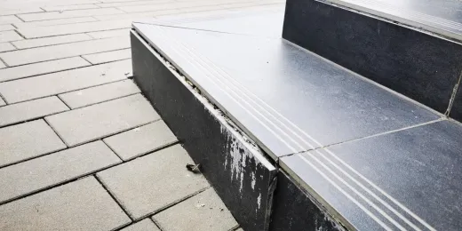 Odspajanie się płyt od podłoża lub wykwity solne na najniższym stopniu schodów tuż przy gruncie