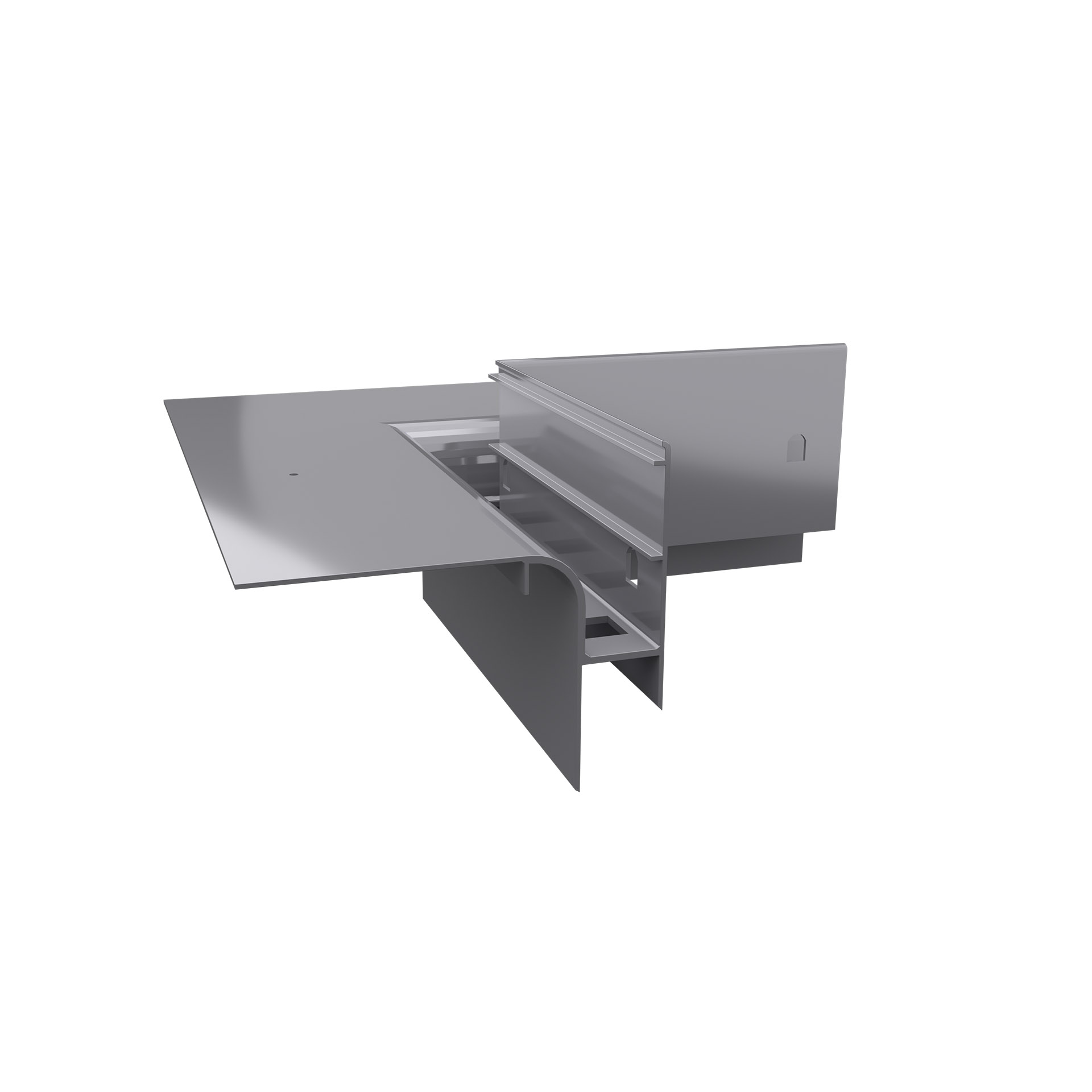 Łącznik LW30/LW30R PLUS/LW60/LW63 jest elementem systemowego wykonania okapu profilami W30, W30R PLUS, W60 lub W63, który służy do łączenia między sobą profili prostych oraz profili z narożnikami.