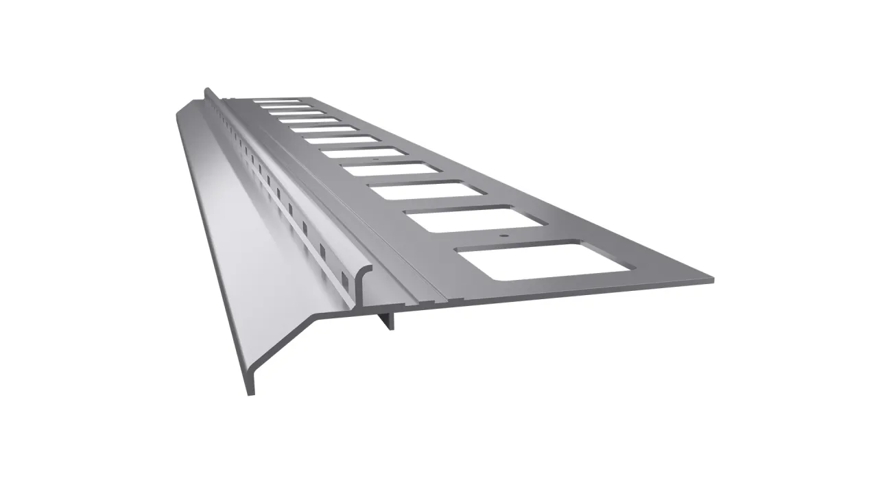 Skuteczne odprowadzanie wody z powierzchni posadzki dzięki innowacyjnej konstrukcji profilu z umieszczonymi od czoła profilu otworami drenażowymi.