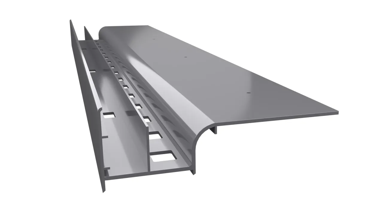 Innowacyjna konstrukcja profilu W20 umożliwiająca estetyczne wykończenie okapu tarasu i balkonu z posadzką wentylowaną, układaną w poziomie na regulowanych wspornikach tarasowych.