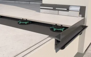 Posadzka wentylowana to ceramiczne, kamienne lub betonowe płyty posadzkowe o grubości od 2 do 6 cm, układane na wspornikach RENOPAD PRO o zmiennej lub SMART stałej wysokości. Podłoże pod wsporniki stanowi izolacja przeciwwodna wykonana z membrany EPDM układana na sztywnym podłożu, np. podkładzie cementowym.