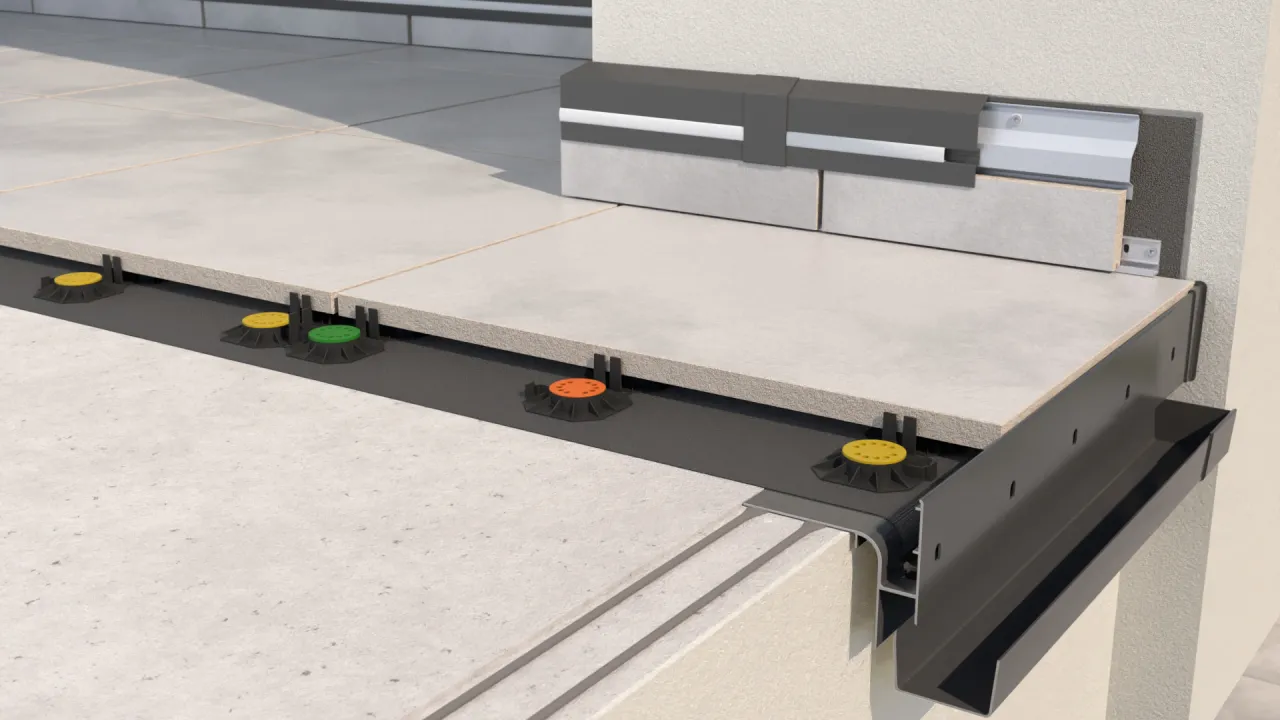 System do wykonywania posadzek w spadku, równolegle do płaszczyzny podkładu, polecany na duże powierzchnie tarasów i balkonów.